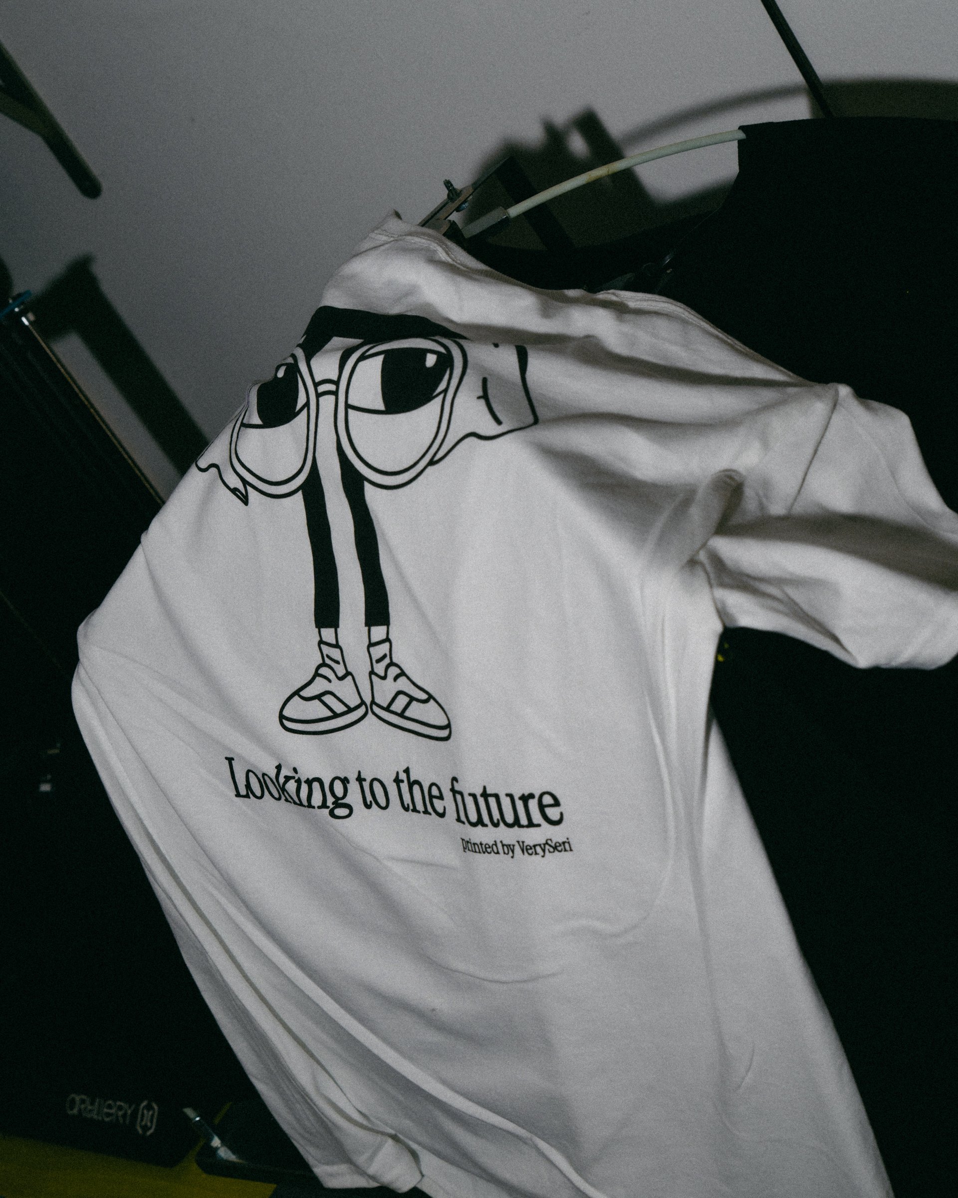 "Looking to the Future" is a limited edition of 50 t-shirts produced in collaboration with and printed by VerySeri. The t-shirt features the Pittogramma logotype on the front and our mascot illustrated by Laura Placenti (Alloropuro) on the back.